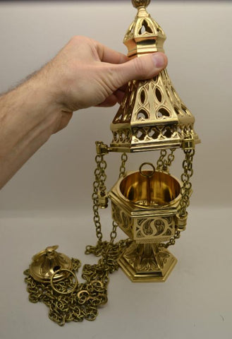 NOTE: Thurible is sold à la carte. IT DOES NOT INCLUDE THE BOAT AND SPOON. For the matching Boat and Spoon, please order "The Traditional Gothic Boat/Spoon" in our webstore. Please allow 1-6 weeks for delivery.